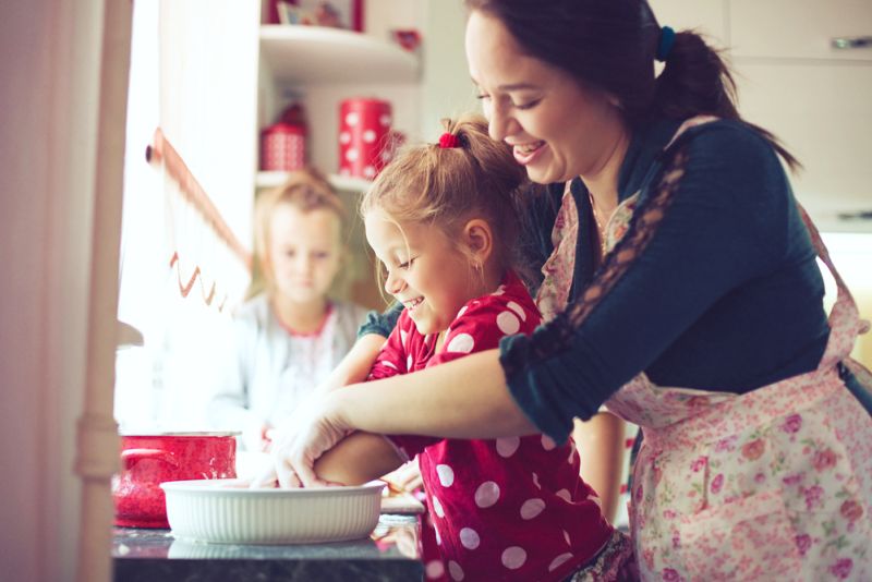 6. Făcutul de prăjituri. Copiilor le place să se mâzgălească cu cocăde prăjituri sau fursecuri (și să o mănânce). În funcție de vârsta și dexteritatea copilului ău (și toleranța ta la haosul din bucătărie), copilul poate ajuta la măsurarea ingredientelor sau doar să le adauge gata măsurate de tine.