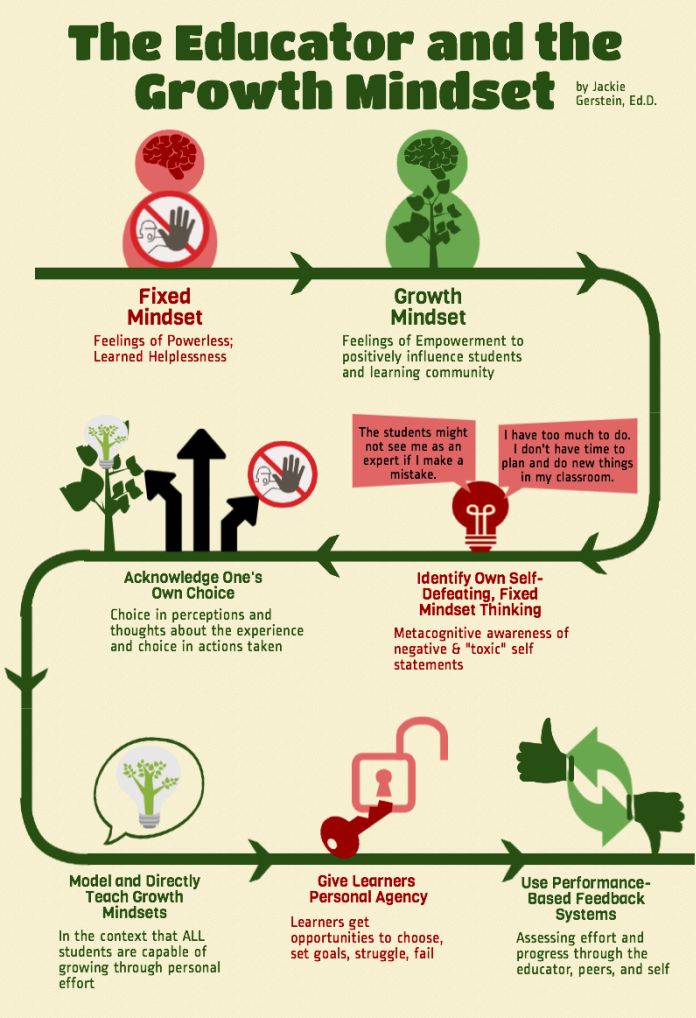 În locul acestei mentalități fixiste și paralizante, educatorii ar trebui să se concentreze pe o mentalitate de creștere, discuția fiind purtată de obicei în termeni de mentalitate de creștere versus mentalitate fixistă. Am vrut, de aceea, să aduc în discuție ceva specific educatorilor care semnifică dorința lor de a continua să evolueze și să-și construiască abilitățile profesionale.