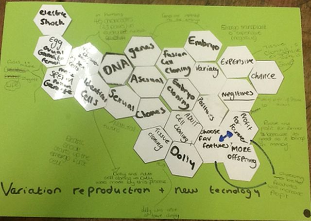 Și asta este cu adevărat frumusețea gândirii hexagonale. Ea furnizează o trambulină pentru o discuție în totalitate creativă. Atunci când dai unui mic grup de elevi un pachet de hexagoane și le ceri să le conecteze așa cum aleg, fiecare grup va veni la final cu o rețea diferită, pentru motive diferite. De-a lungul procesului, sperăm că își vor pune unul altuia întrebări și că se vor cufunda în gândirea despre conceptele scrise pe ele, argumentând despre ce idee se conectează mai bine cu un concept important și care dintre exemple merită să ocupe una din cele șase laturi prețioase.