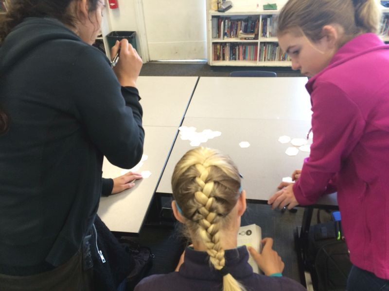 Grupurile de elevi discută posibilitățile, trăgând hexagoanele și plasându-le în locurile în care consideră că se potrivesc. Produsul final poate arăta în sute de moduri diferite.