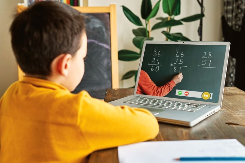 Elev din clasele primare urmărind lecția de matematică