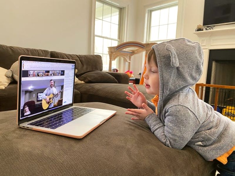 Elev de grădiniță urmărind lecția de muzică