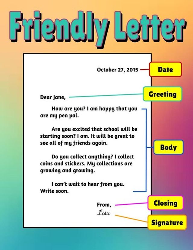 Învață-i pe elevii tăi să creeze scrisori bune, amicale și dă-le motivul să facă asta! Întâi, prezintă conceptul de scrisoare amicală și compară acest format cu o scrisoare de afaceri, de exemplu, cu ajutorul exemplelor din Letter Formats*. Apoi, pune-i pe elevii tăi să-și facă fiecare modelul de format sau să tipărească unul din cele selectate de Jan Brett în Friendly Stationery**.