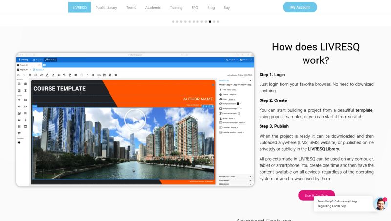 1. Un editor pentru crearea de lecții digitale interactive – Author, care deși este format dintr-o suită integrată de instrumente digitale, este ușor de folosit de către oricine și poate fi utilizat și în echipă, colaborativ. Iar lecțiile rezultate se pot descărca pentru a fi folosite pe altă platformă de comunicare sau offline, sau se pot folosi direct din Librăria Livresq, pe orice tip de echipament;