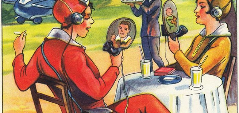 “Cunoscut la acel timp ca ‘film de corespondență‘, era o versiune ”ultimul răcnet” a vremii pentru conferințe video. Fiecare participant la conversație își vedea partenerul pe un mare ecran de film în timp ce vorbea la un aparat de tip fonograf. Era necesară o a doua persoană care să opereze un echipament similar telegrafului.”