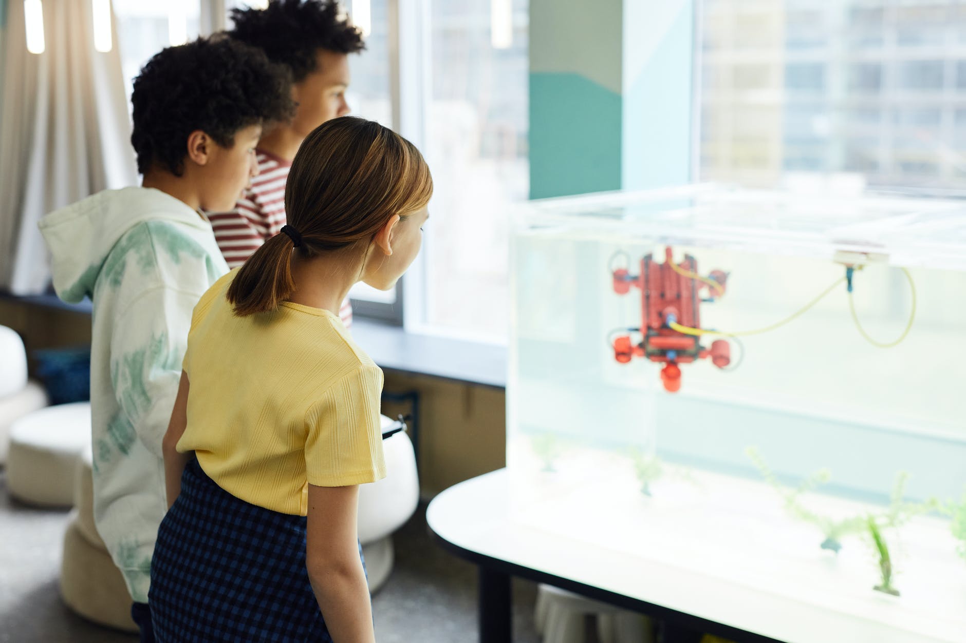 - Clădirile școlilor vor arăta din ce în ce mai diferit. Pe măsură ce stilul și nevoile de învățare se schimbă, școlile nu vor mai avea același tip de elemente interioare. Sălile de clasă se pot deschide mai mult pentru a deveni spații de lucru colaborative care găzduiesc resurse pentru o varietate de arii de conținut. Filtrarea aerului poate fi revizuită pentru a preveni răspândirea ușoară a bolilor din aer. Atunci când elevii se adună pentru prânz sau pauză, aceștia pot avea acces la zone care sunt construite pentru a încărca dispozitive digitale, stații care le permit să interacționeze cu elevi/studenți care nu se află la fața locului sau le oferă posibilitatea de a participa la activități care au loc la distanță.