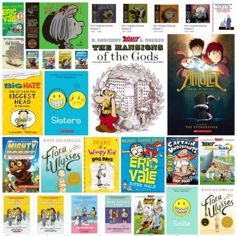 De exemplu,Science Comics (#1), publicate de First Second, prezintă vizual și verbal concepte și vocabular legat de științe, prin utilizarea unor suporturi de imagini; sau seriale precum Seen (#2), publicate de Studiourile BOOM!, în care găsiți povești despre figuri istorice prezentate prin cuvinte și imagini.