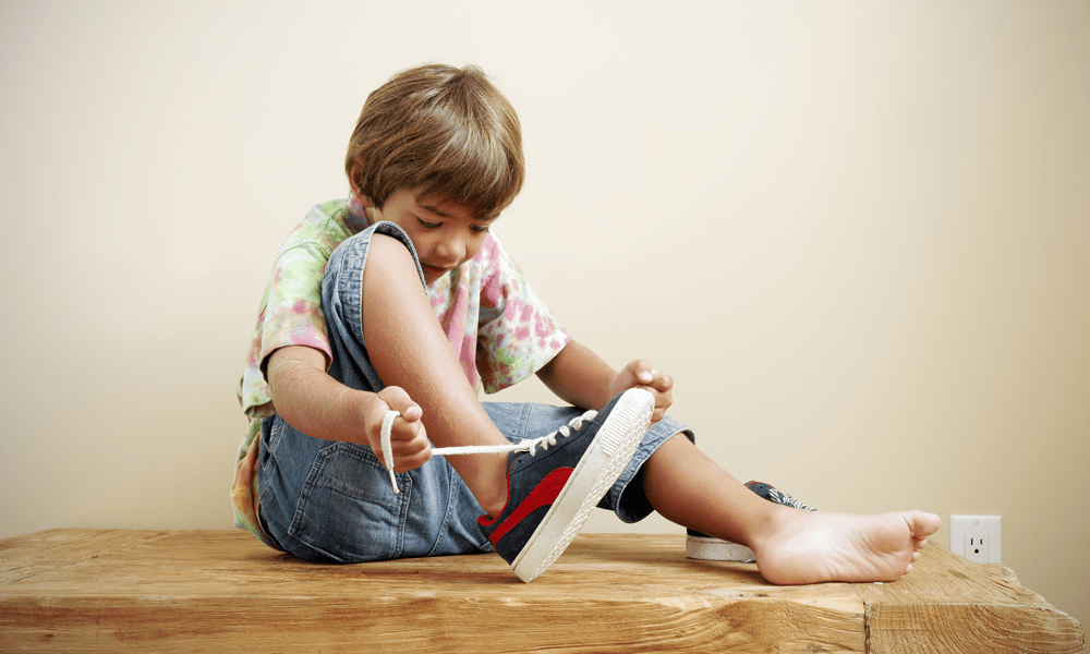 Și vreți să știți cine își mai leagă șireturile în formă de urechi de iepuraș? Fiica mea, Kallea.