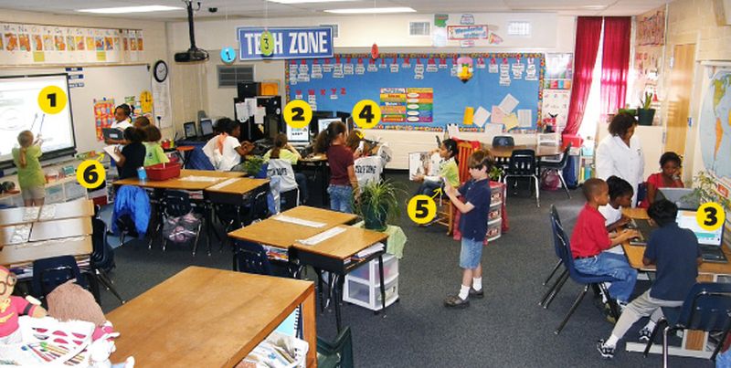 Rotația stațiilor îl eliberează pe profesor, care nu mai stă în fața sălii ci lucrează alături de elevi, acest lucru permițând profesorului să facă lecția mai accesibilă.