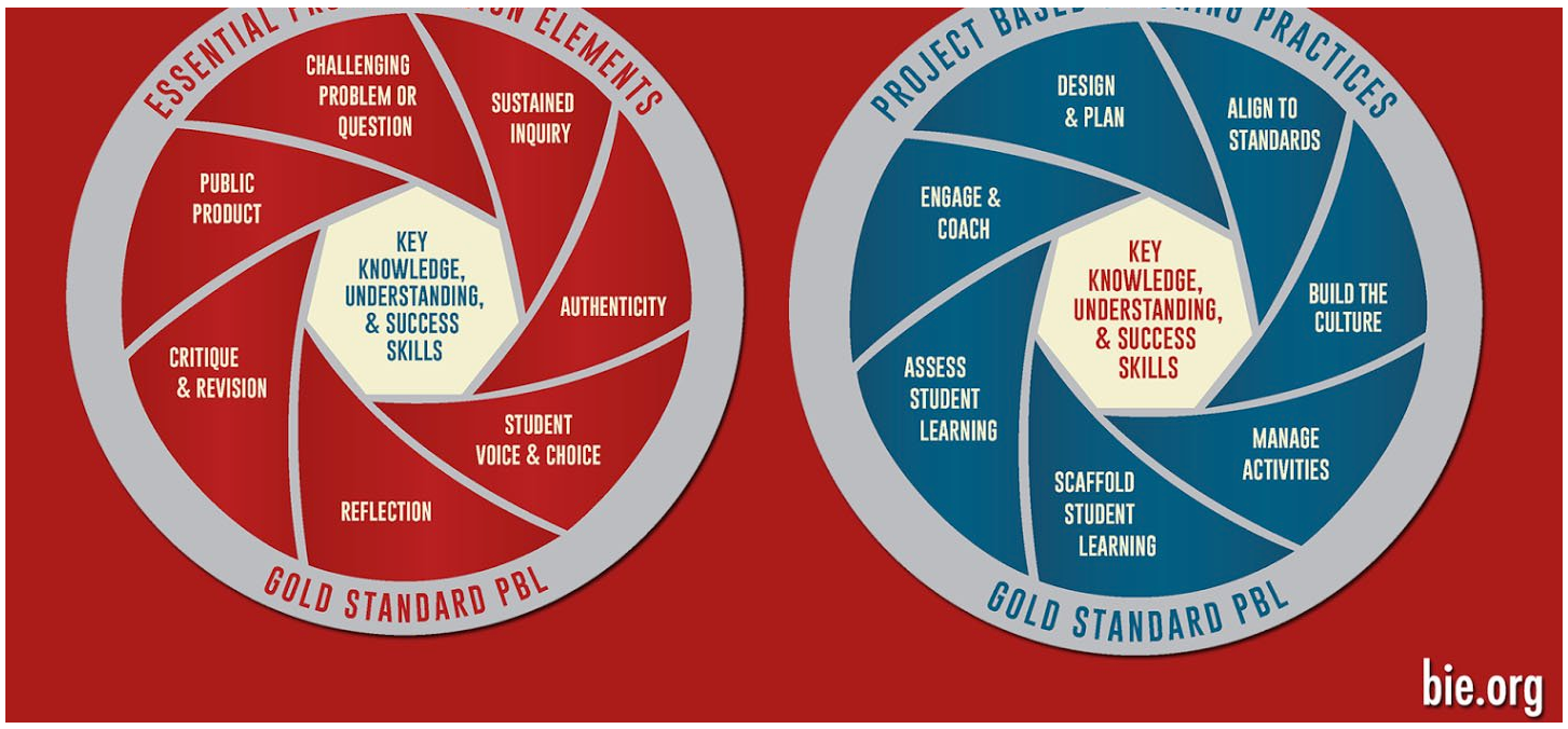 În cartea Setting the Standard for Project Based Learning (Setarea standardului pentru învățarea bazată pe proiecte), autorii John Larmer, John Mergendoller și Suzie Boss prezintă un cadru pentru PBL – Standardul de aur, care include elementele esențiale de concepere a proiectelor și practici de predare bazate pe proiecte.